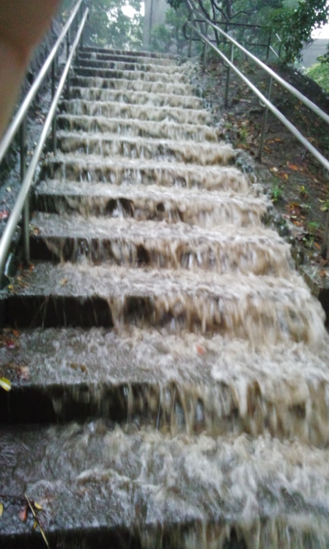 雨が滝のように流れてます。