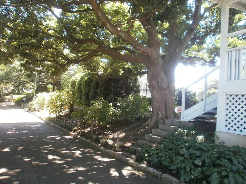 連日猛暑が続いています。山手公園は歴史のある大きな樹木のおかげで、日影が多く、高台に位置するため木々の間を風が通りぬけます。