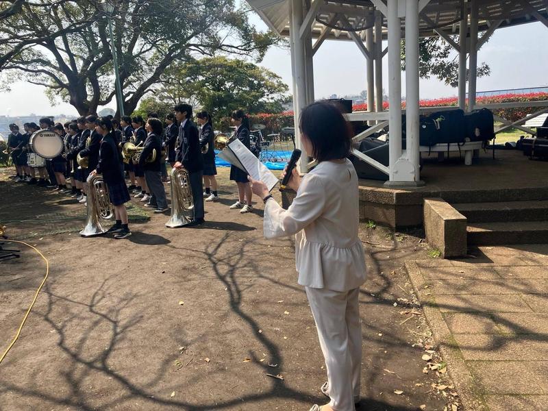 桜が咲く中での港中学校吹奏楽部の演奏はとても素晴らしかったです。