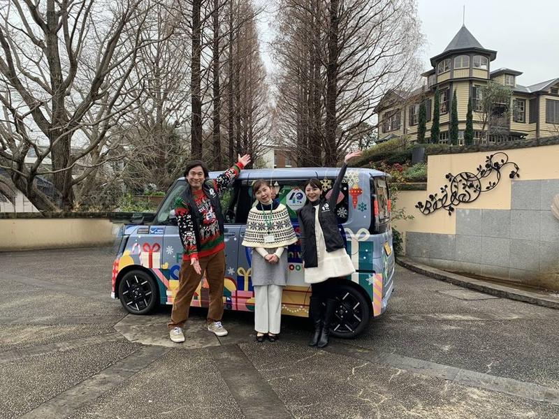 クリスマスのプレゼント仕様のラッピングカーに乗ってやってきました。