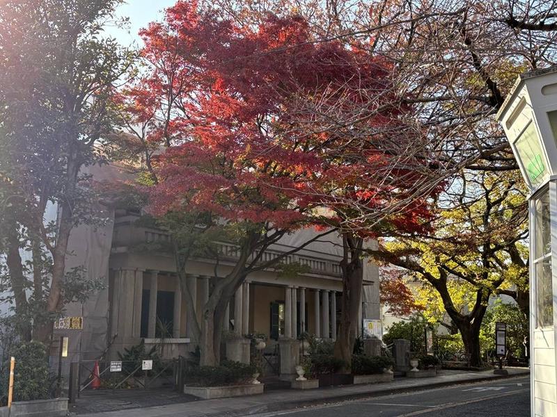 山手234番館は現在、改修工事のため休館しておりますが、館前のモミジはちょうど見ごろを迎えています。