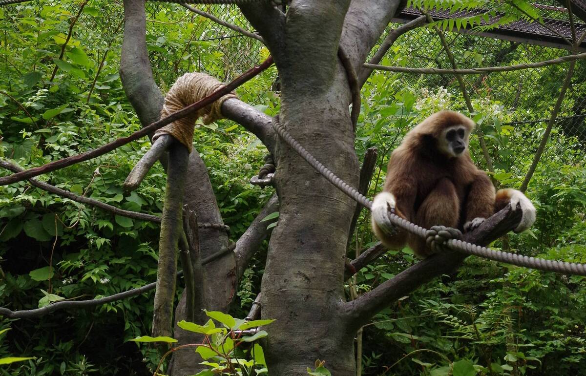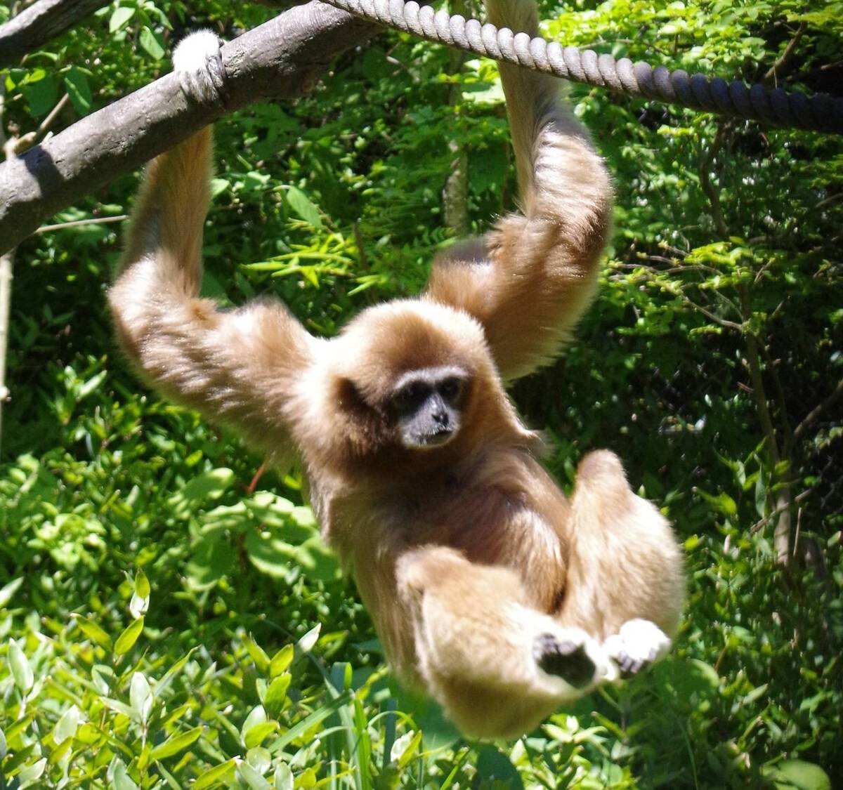種名のとおり白い手足が特徴で、体色は灰白色のものから黒色のものまでいる。一夫一婦とその子供の4頭前後の家族で暮らし、生活の拠点は樹上で、長い手を巧みに使って木から木へ枝わたり(ブラキエーション)をして移動する。また、主食は果実や若葉で、少量の昆虫も食べる。
