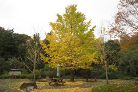 こちらは、11月下旬のバーベキュー広場のイチョウの木の様子です。