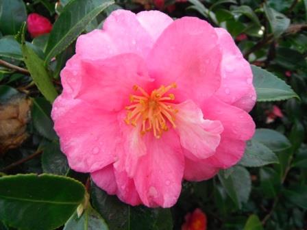カンツバキ ツバキとサザンカの交雑種と考えられています。