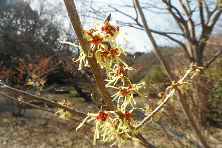 マンサク。よじれたひもみたいな花弁です。