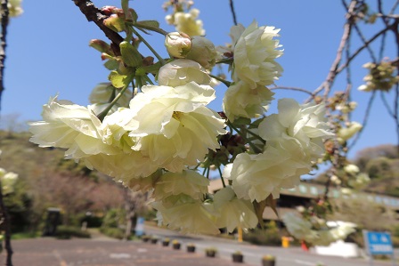 サクラとしては珍しい淡い黄色の花が咲きます。