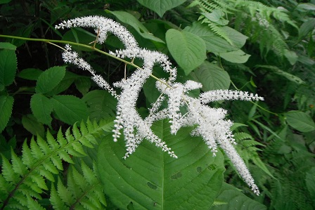 アカショウマ ユキノシタ科。円海山口付近に群落があります。