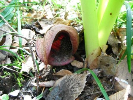 保護区内のサトイモ科のザゼンソウも顔をのぞかせてきました。