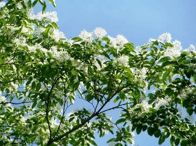 先週のブログで予告されていた「ヒトツバタゴ」(ナンジャモンジャノキ)が咲きました。