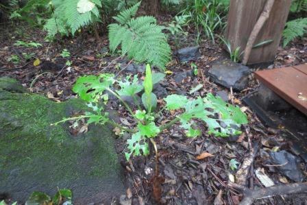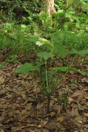 おもしろいことに、花が咲く頃になると葉が黄色っぽく変わって、やがて黒くとろけたように枯れてしまいます。
