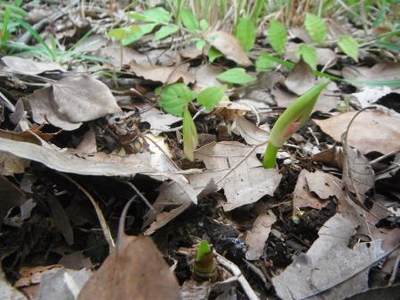 ↓花茎が顔を出しました。これではうっかり踏んづけてしまいそうですが...。