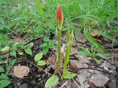 ヒガンバナそっくりなのに、ずっと早く咲く花が見られるようになりました。