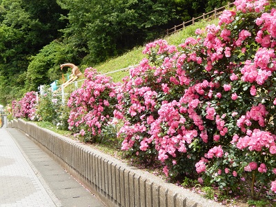 金沢自然公園には動物園の入口(券売所付近)にバラの花壇があります。