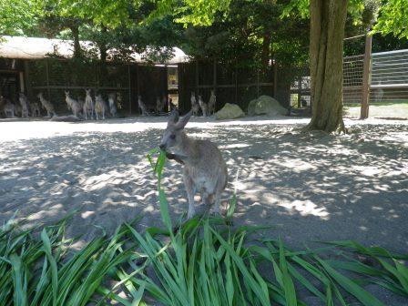 更新日:2014.08.27夏のおやつ 更新日:2014.08.27 夏のおやつ 夏が苦手なカンガルー。日中に、大好きな青草を置いてもなかなか来てくれません。でも、今年は1頭きてくれます!まだ小さなミイちゃん♪その後ろで気にはなっているけど、日なたに出たくない他のカンガルーたちが見ています(笑)だれにも邪魔されずに食べれてよかったね♪ この記事をシェアする Facebook Twitter LINEで送る 子どもの… ぱんぱん…