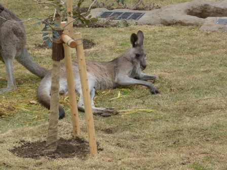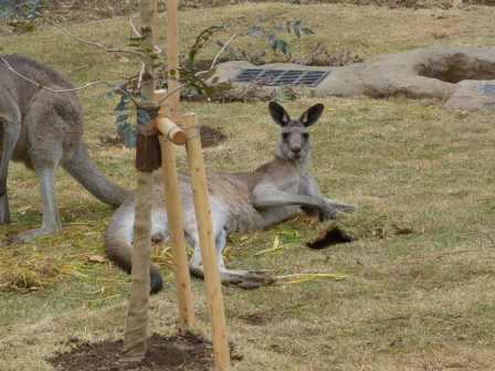 更新日:2016.05.17楽しい? 更新日:2016.05.17 楽しい? 前の展示場は砂でしたが、新しい展示場は芝生がはってあります。カンガルーたちは気になるようで、寝転んで芝生をつかんで持ち上げる。お腹がすけば、食べ始める…。そんなにいじったら、すぐに芝生がなくなっちゃうよ~。ほどほどにお願いします(笑) この記事をシェアする Facebook Twitter LINEで送る 練習 リニュー…