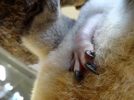 ▲コアラの手脚の表側は黒色ですが、この頃はまだ指の先端以外はまだピンク色でした。