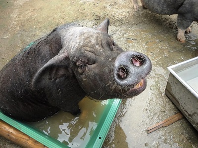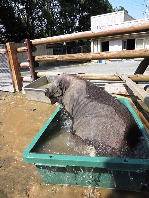 プール以外にも水たまりで泥浴びをするなど、彼女たちなりに暑さ対策をしています。