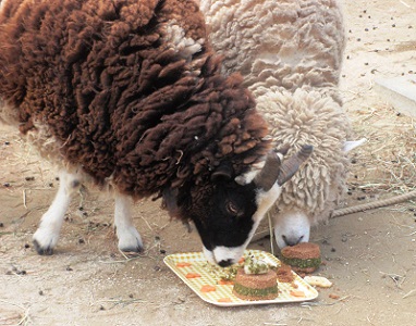 ジャコブヒツジの「アズキ」も2/23で2歳になるので、ケーキのプレゼントをしました。