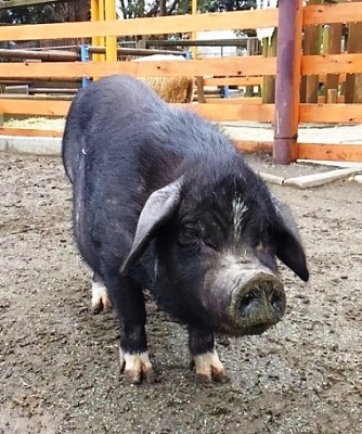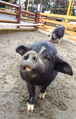 ミニブタたちには、ちょっと小さくて1頭でもぎゅうぎゅうでした。