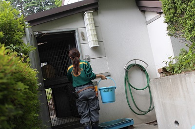 切った野菜やペレットを車へ積み、各獣舎へ届けていきます。