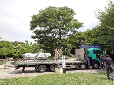新たに加えて完成したのが、今回金沢動物園にやってきた巨大カブトムシオブジェです。