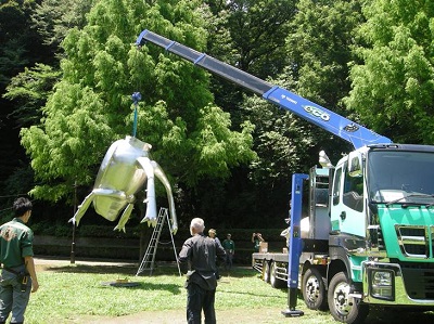 頭がセットされました。高さ5mもある、巨大なカブトムシでした。