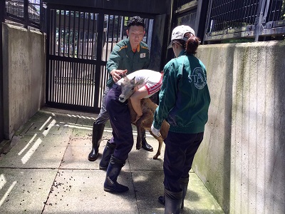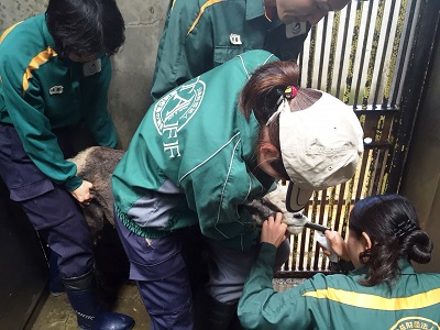 飼育員が動物に負担をかけないように、正しい方法で『保定』し、