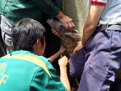 今回はオオツノヒツジを保定して、色々な検査を行いました。