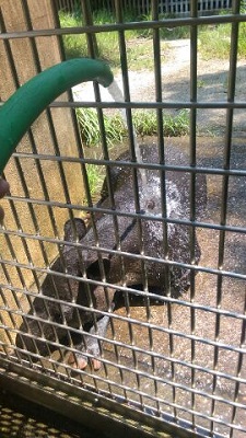 ホースを使った水浴びです!