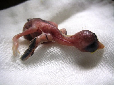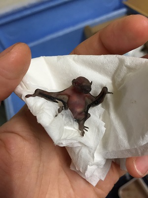 まだ毛が生えていない、体重1gほどのアブラコウモリ。