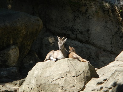 最初はおっかなびっくり岩山を移動しているラージを母親は心配そうにそばにいました。