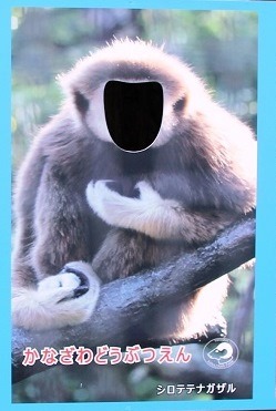 来年の干支は申(サル)ということで、テナガザルの顔出し看板があるのですが、