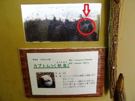金沢動物園では、オオカンガルー展示場横の「身近ないきもの館」でカブトムシの幼虫も展示しています。