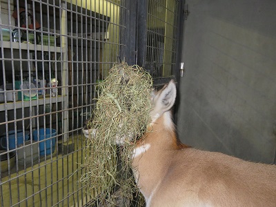 牧草や落ち葉を多めに置いたり、木の枝をぶらさげたり。