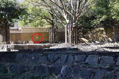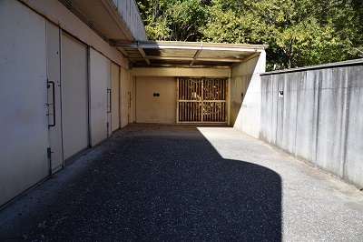 奥の鉄柵の先と向かって右の壁の向こうが展示場です。