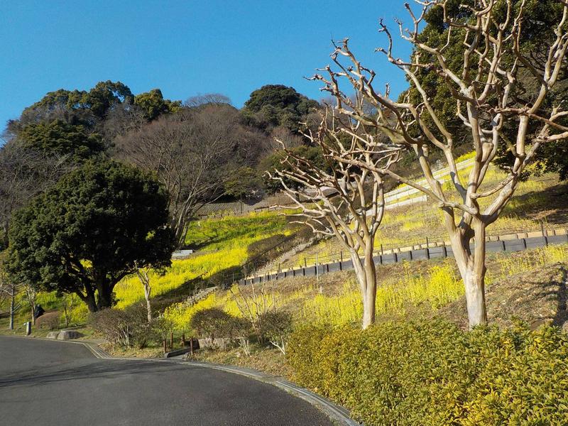 今年もローラーすべり台横こども広場斜面でナノハナ(アブラナ科)が咲いています。