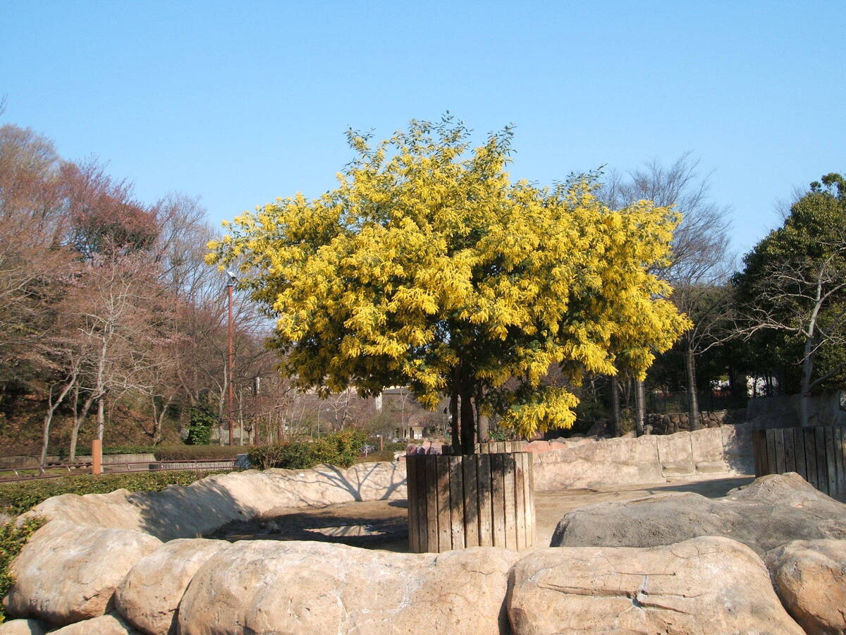 ギンヨウアカシアのことで、ぼんぼんのような黄色い花をたくさんつけます。ミモザサラダやカクテルのミモザは、この花の色からイメージされたネーミングです。