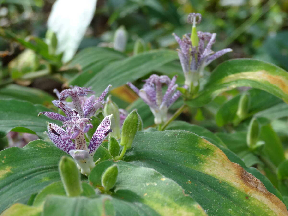 花弁が鳥のホトトギスの模様ににているため、この植物もホトトギスと名づけられました。日本原産の植物で、典型的な林床植物です。