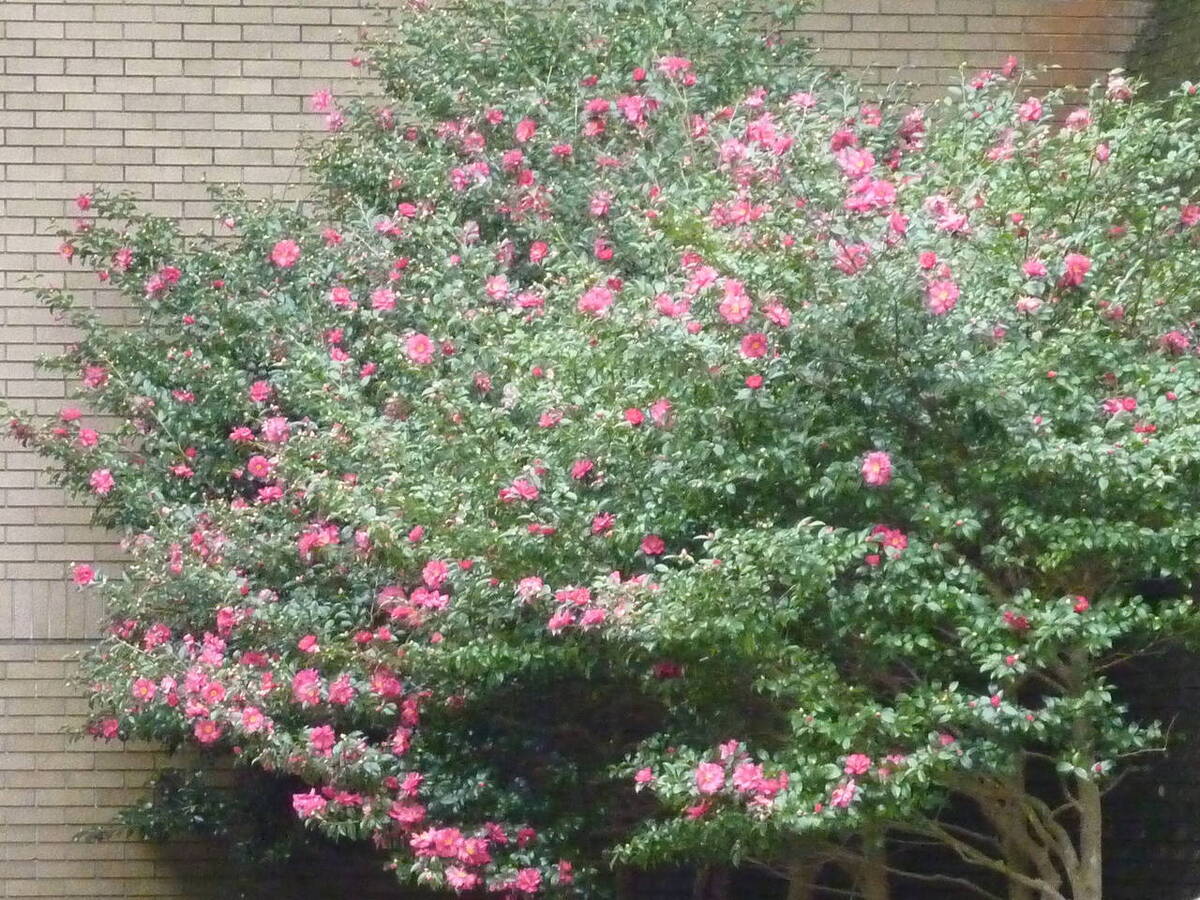 植栽される園芸品種の花の色は赤や、白や、ピンクなど様々です。花の少ない冬季に咲いてくれる花として、なくてはならない公園樹ですが、チャドクガが発生するため、注意が必要です。
