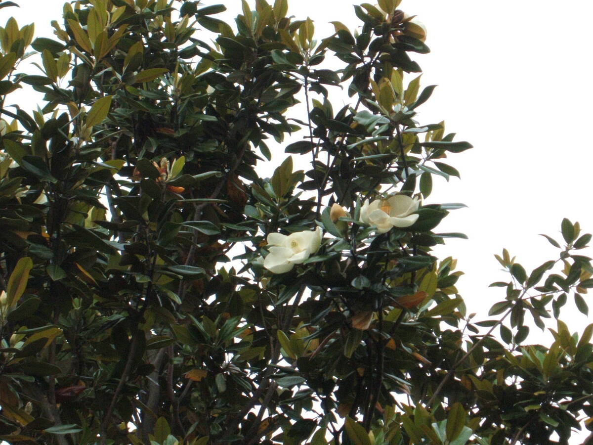 モクレンの仲間です。いかつい葉っぱに似合わず(?)純白の大きな花を咲かせます。とても大きな樹になるので、「大山木(たいさんぼく)」と漢字で書きますが、アメリカ原産の植物です。