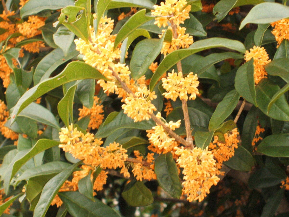 9月終わりか10月初めにとても甘い香りを漂わせます。わずか1~2週間の開花ですが、その香りはとてもインパクトがあります。散った花のじゅうたんもきれいです。