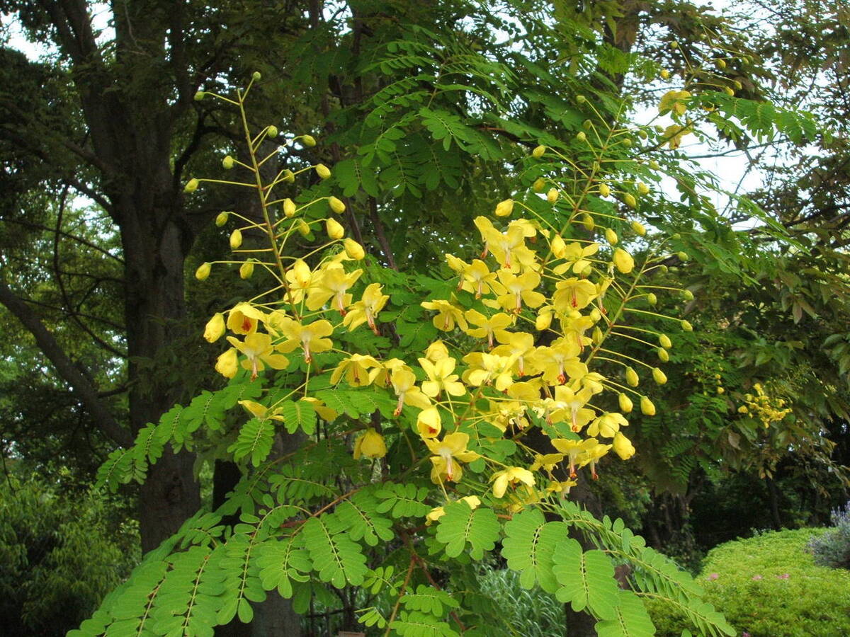 マメ科つる性落葉樹で、黄色の美しい花を咲かせます。この奇妙な名前は蛇がからまるように生える様子からつけられたようです。鋭いトゲに注意!
