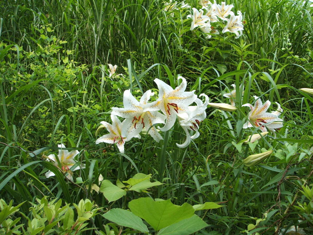 日本原産のユリで山地の林縁や草地に分布します。神奈川県の県花でもあります。花の香りは甘く濃厚でとても強いです。発芽から開花までには少なくとも5年以上かかり、また球根が太って大きいとより多くの花をつけます。