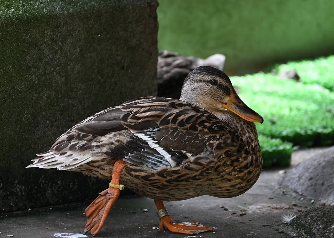 ・繁殖期のオスは頭が緑光沢のある黒で首に白い輪がある。