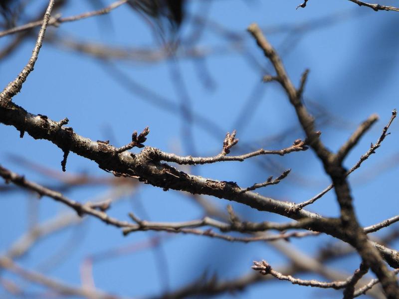 動物園内のソメイヨシノの基準木は、硬い小さな蕾が見られるといったところでしょうか...。