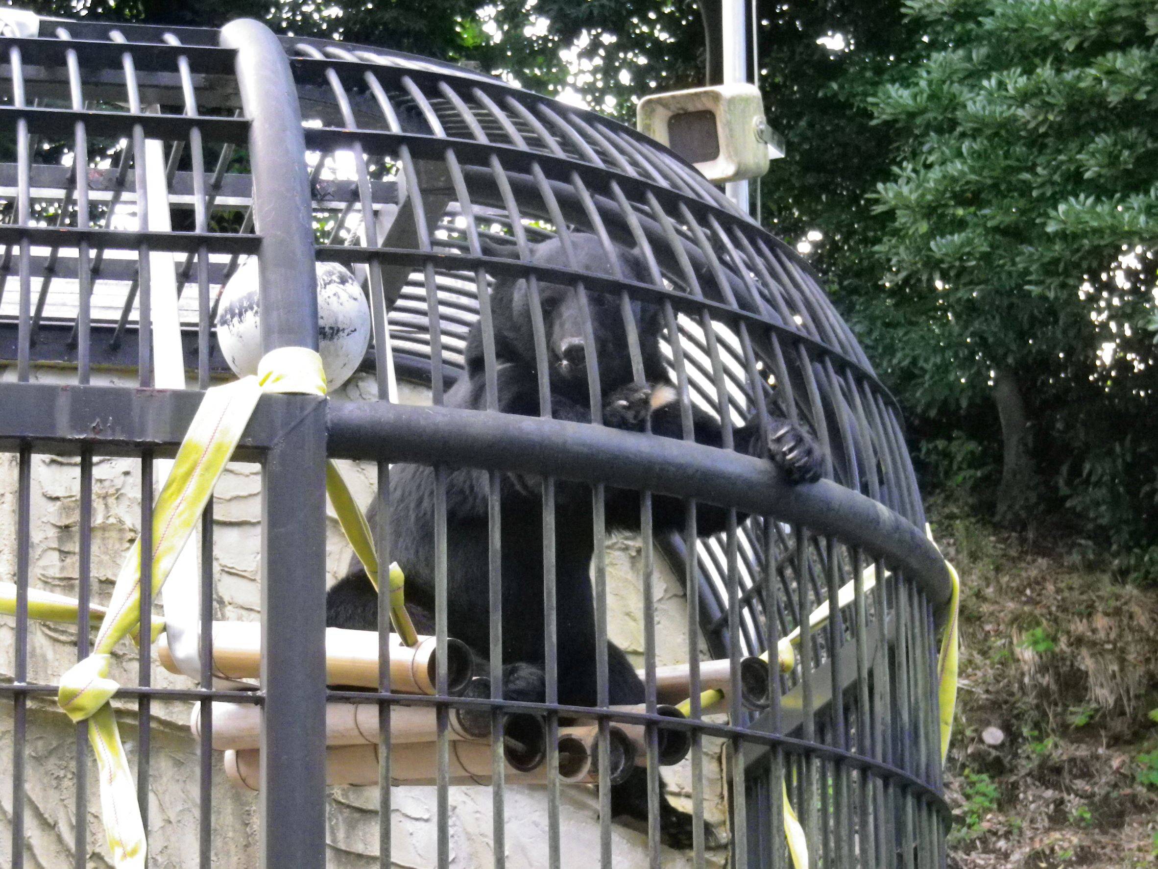 そもそもサルのように手で物を掴めないクマにとっては、垂直かつぶら下がった不安定なハシゴには登れませんでした。