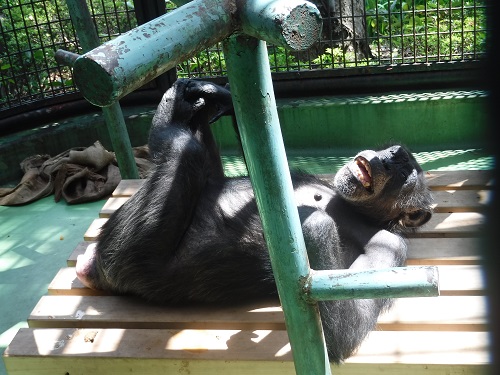 暖かく気持ちの良いこの季節。チンパンジー達も気持ち良く