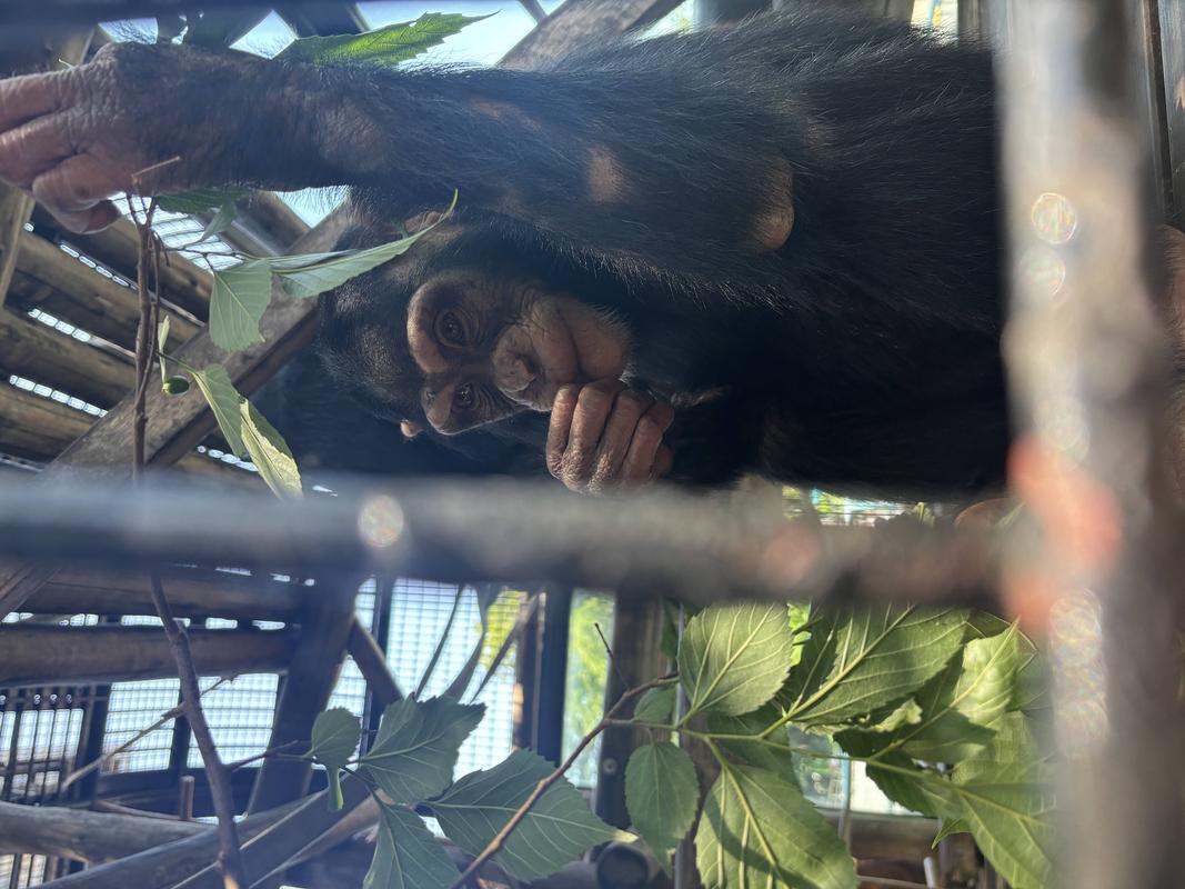 ただし、なぜか葉っぱを与えすぎると当園のチンパンジーたちは便がゆるくなりがちなので、食べるから、喜ぶからと、あげすぎ注意なことがわかった一年でした。
