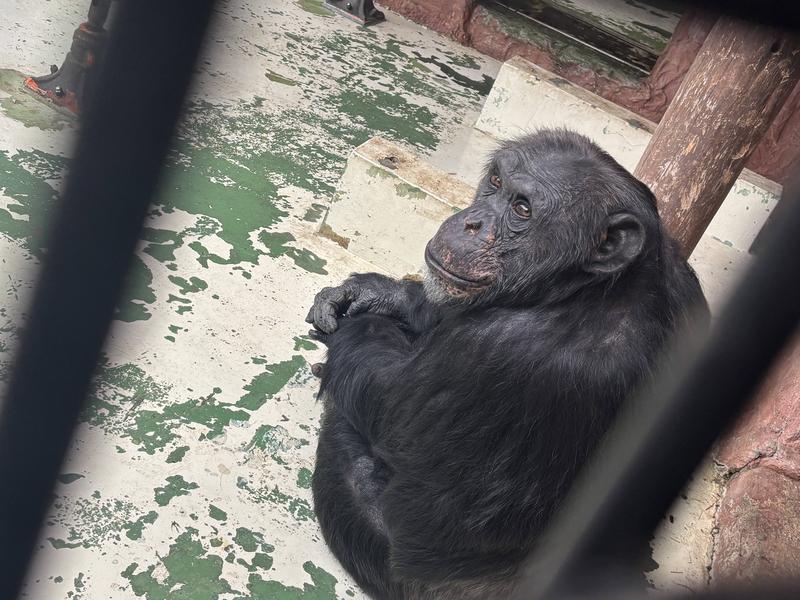 2021年、私がチンパンジーの代番者として初めましての頃、毎日毎日何度も何度も水をかけられ、鉄の扉や格子をたたき大きな音を出し脅すような態度で、なかなか手厳しかったコブヘイ。「人工哺育で甘えん坊。メスよりもオスのチンパンジーの方が裏表がない。」という前評判とは裏腹に、私の存在を許してもらうまで一番時間がかかりました。正直、2021年のチンパンジーメンバーの中で一番怖かった...