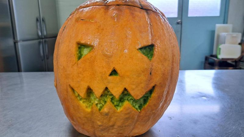 チンパンジー担当から『観賞用カボチャにジャックオーランタンを彫ってほしい』との